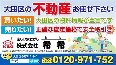 (株)希希は、東京都/大田区で不動産の売買を専門に取り扱っています。大田区の不動産/新築戸建 中古戸建/中古マンション/土地・建築条件付売り地など・・・特に 新築戸建ての新情報は豊富です!